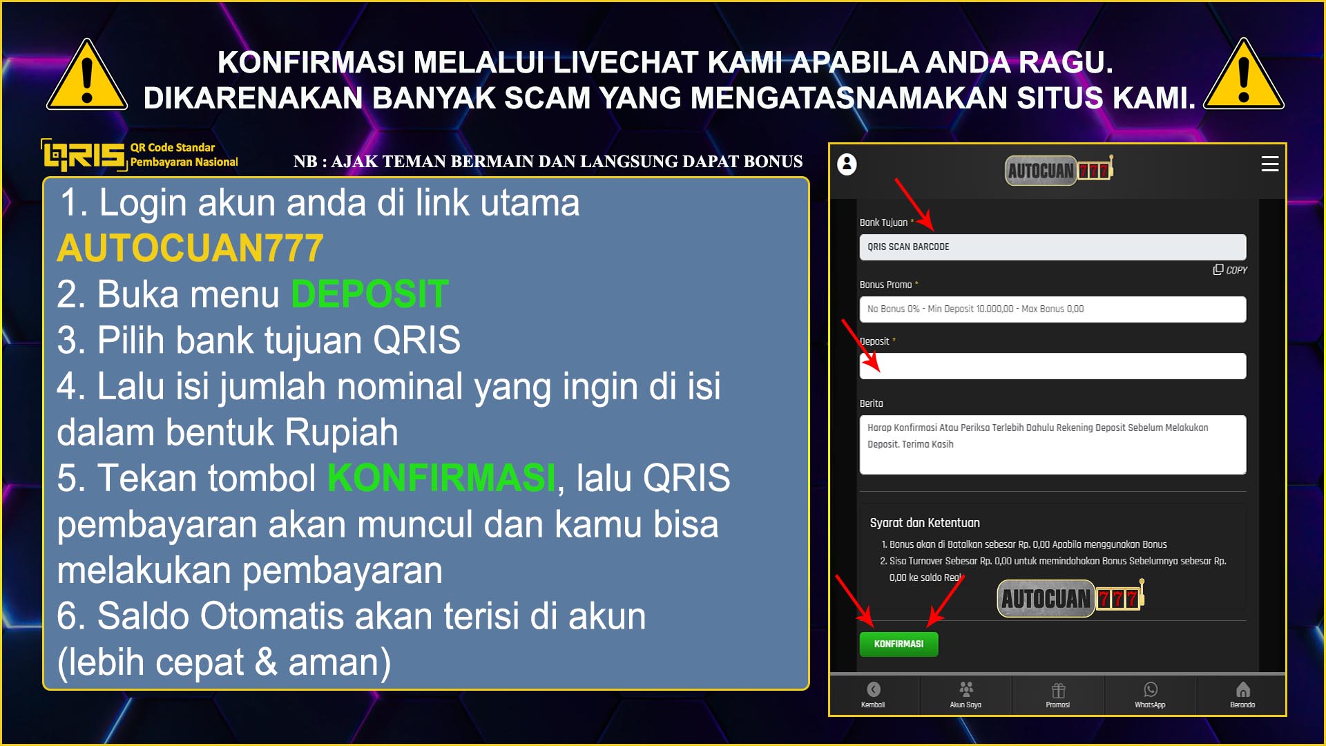 Proses Deposit dan Withdraw di AUTOCUAN777 dilakukan dengan otomatis jadi Cepat & Aman. Berikut dukungan metode :